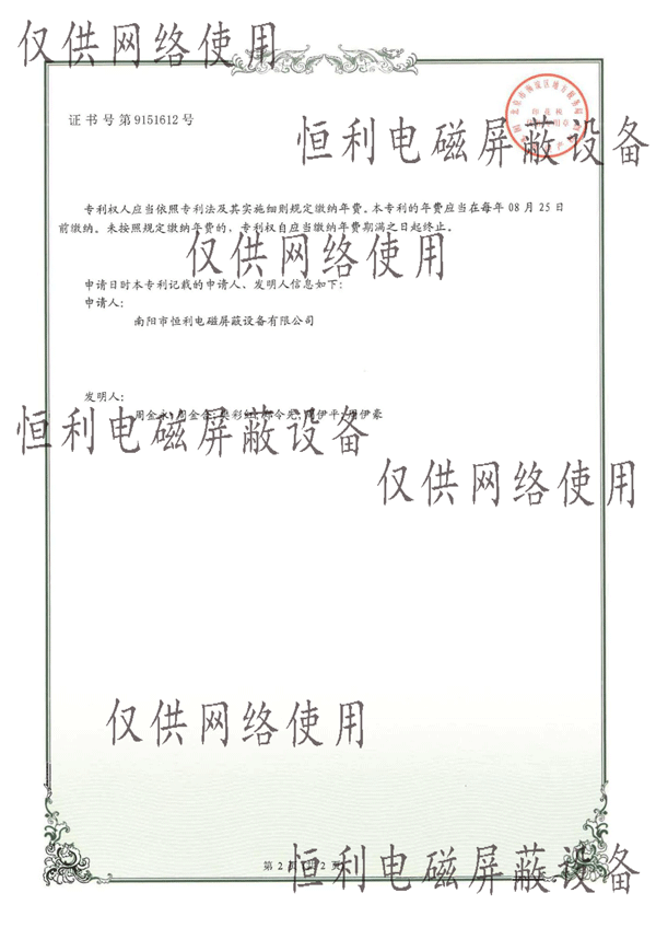 自動(dòng)打開關(guān)閉鎖緊電磁屏蔽門專利證書展示